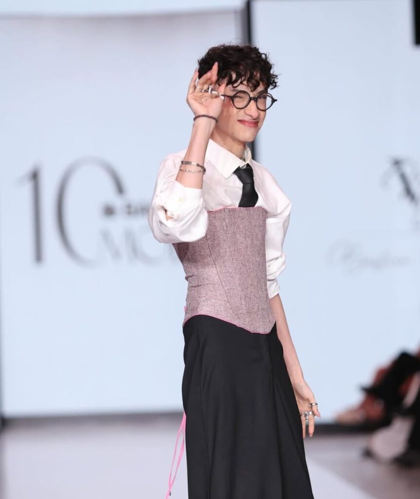 En cuanto a referentes consolidados, su mirada es amplia. Valora profundamente la creatividad de los diseñadores nacionales y su capacidad de crear desde los orígenes culturales. A nivel internacional, confiesa su admiración por Alexander McQueen, así como por propuestas contemporáneas como Palomo Spain y Mark Kong, donde la identidad y la narrativa visual son protagonistas.