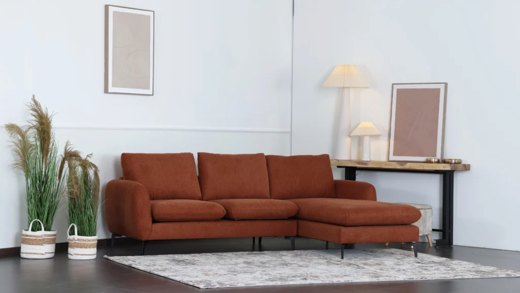 El confort manda este otoño. Los sofás rinconeros en tonos neutros, con textura de lino, se imponen como protagonistas del salón.