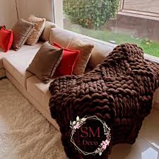 No puede faltar una manta cálida en marrón chocolate, ideal para las tardes de películas o lectura. Además de funcional, se convierte en un detalle decorativo que enmarca la temporada.