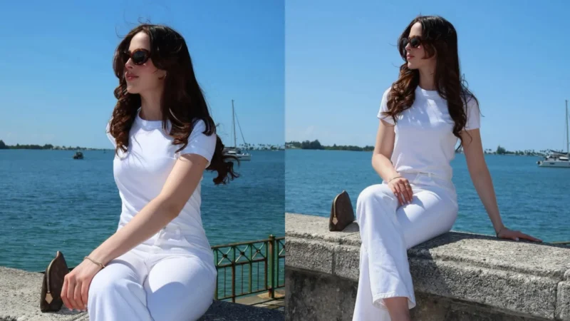 La propuesta que toma fuerza este año no persigue el exceso ni la extravagancia. Persigue autenticidad. Jeans blancos y sandalias planas cafés se convierten en un uniforme moderno que transmite seguridad y buen gusto sin parecer calculado.