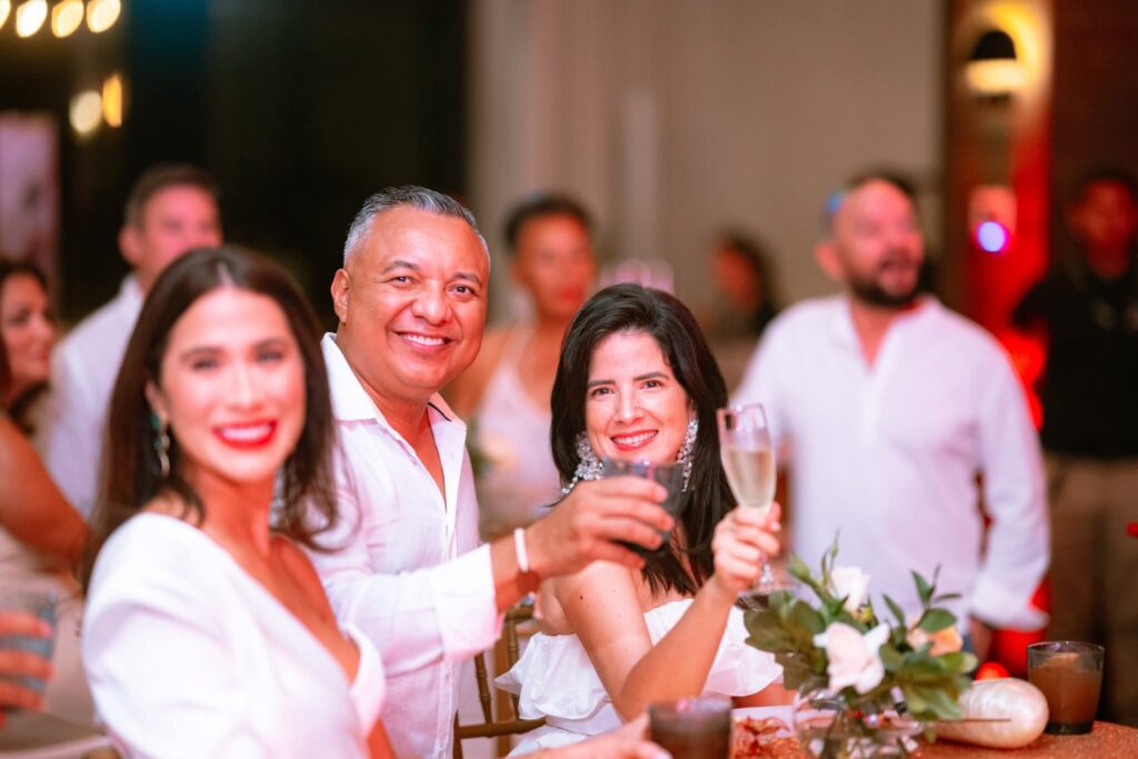 Bajo el código de vestimenta white cocktail chic attire, los invitados deslumbraron con atuendos impecables en blanco, aportando un aire sofisticado y armónico al evento.