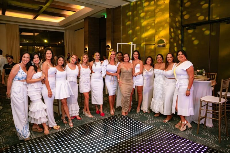 Bajo el código de vestimenta white cocktail chic attire, los invitados deslumbraron con atuendos impecables en blanco, aportando un aire sofisticado y armónico al evento.