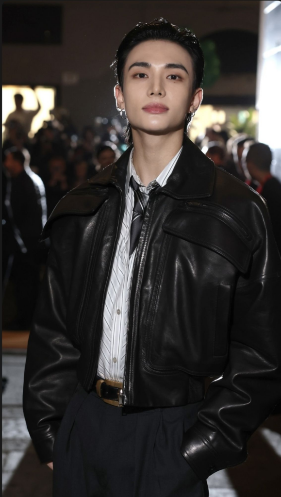Durante ese show, Hyunjin apareció con un look que combinaba un chaquetón de cuero recortado, pantalones de corte elegante, camisa clásica de botones y corbata; su peinado llevaba el cabello muy peinado hacia atrás, muchas joyas en la oreja y una actitud impecable. En redes sociales, Donatella compartió un post en el que escribió: “Soooooooooo good to see you @hynjinnnn my prince forever”.
