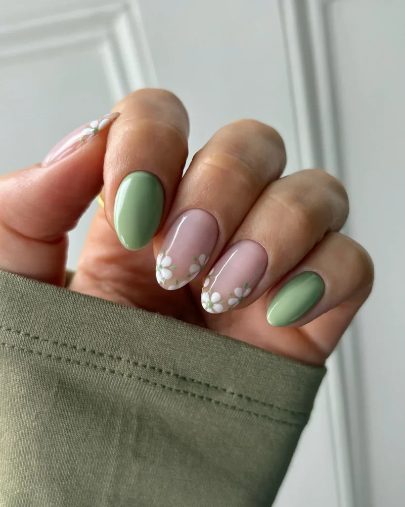 La clave está en alternarlo con bases nude lechosas y añadir flores minimalistas dibujadas con pincel fino o aplicadas en stickers delicados. El acabado glossy es imprescindible para lograr ese efecto pulido y contemporáneo.