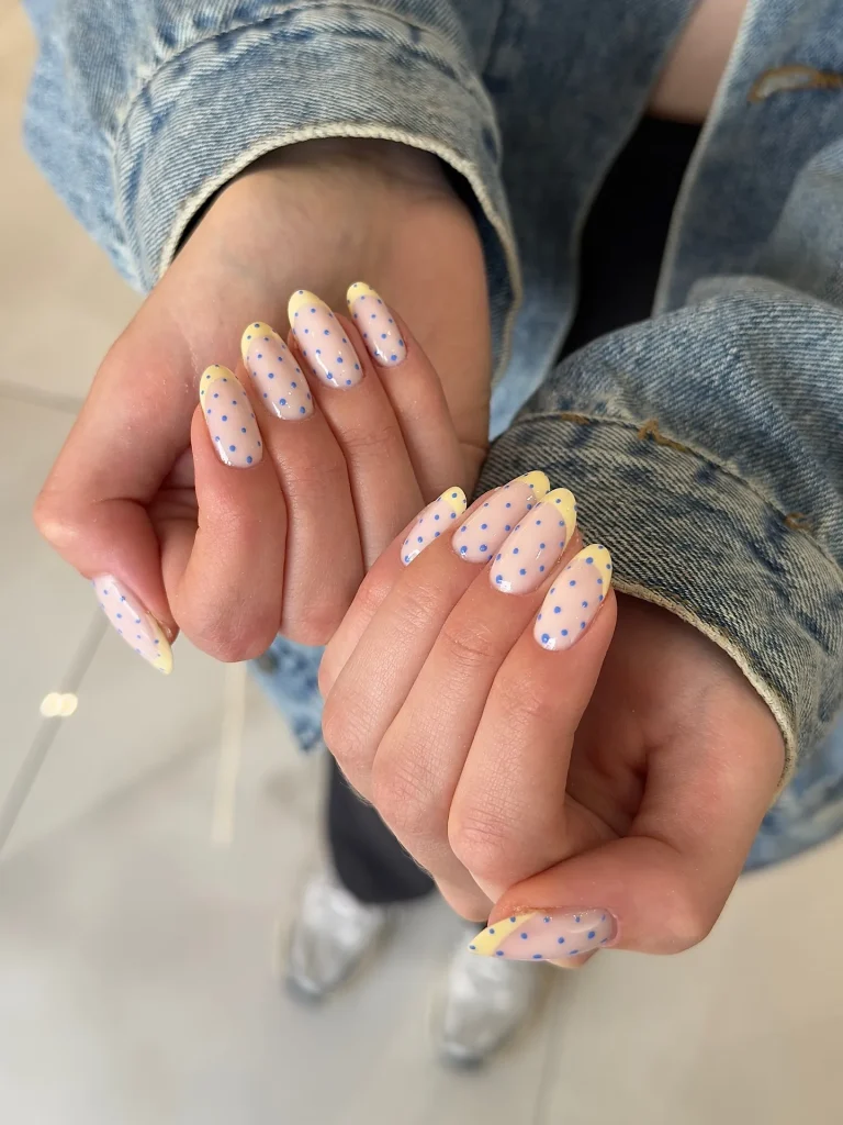 El giro inesperado llega con una punta francesa en amarillo mantequilla, uno de los colores más optimistas de la temporada. Este diseño combina nostalgia con modernidad y funciona perfecto para looks casuales o estilismos más pulidos.