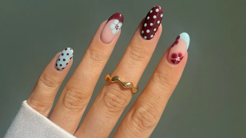 La clave está en alternarlo con bases nude lechosas y añadir flores minimalistas dibujadas con pincel fino o aplicadas en stickers delicados. El acabado glossy es imprescindible para lograr ese efecto pulido y contemporáneo.